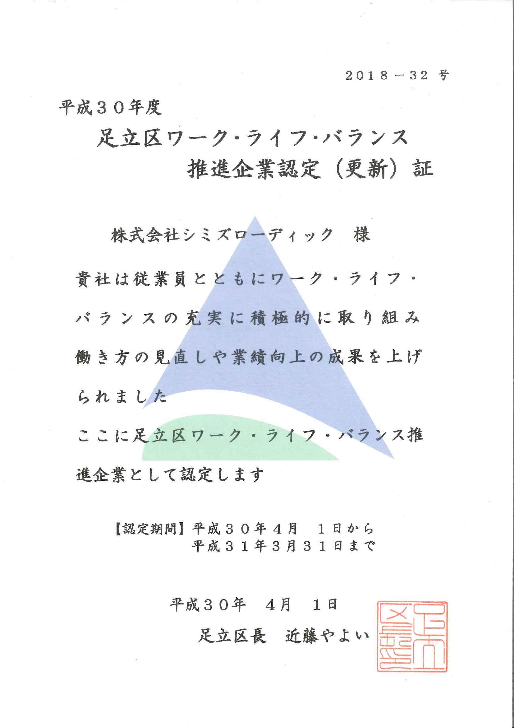 足立区ワーク・ライフ・バランス推進企業認定更新