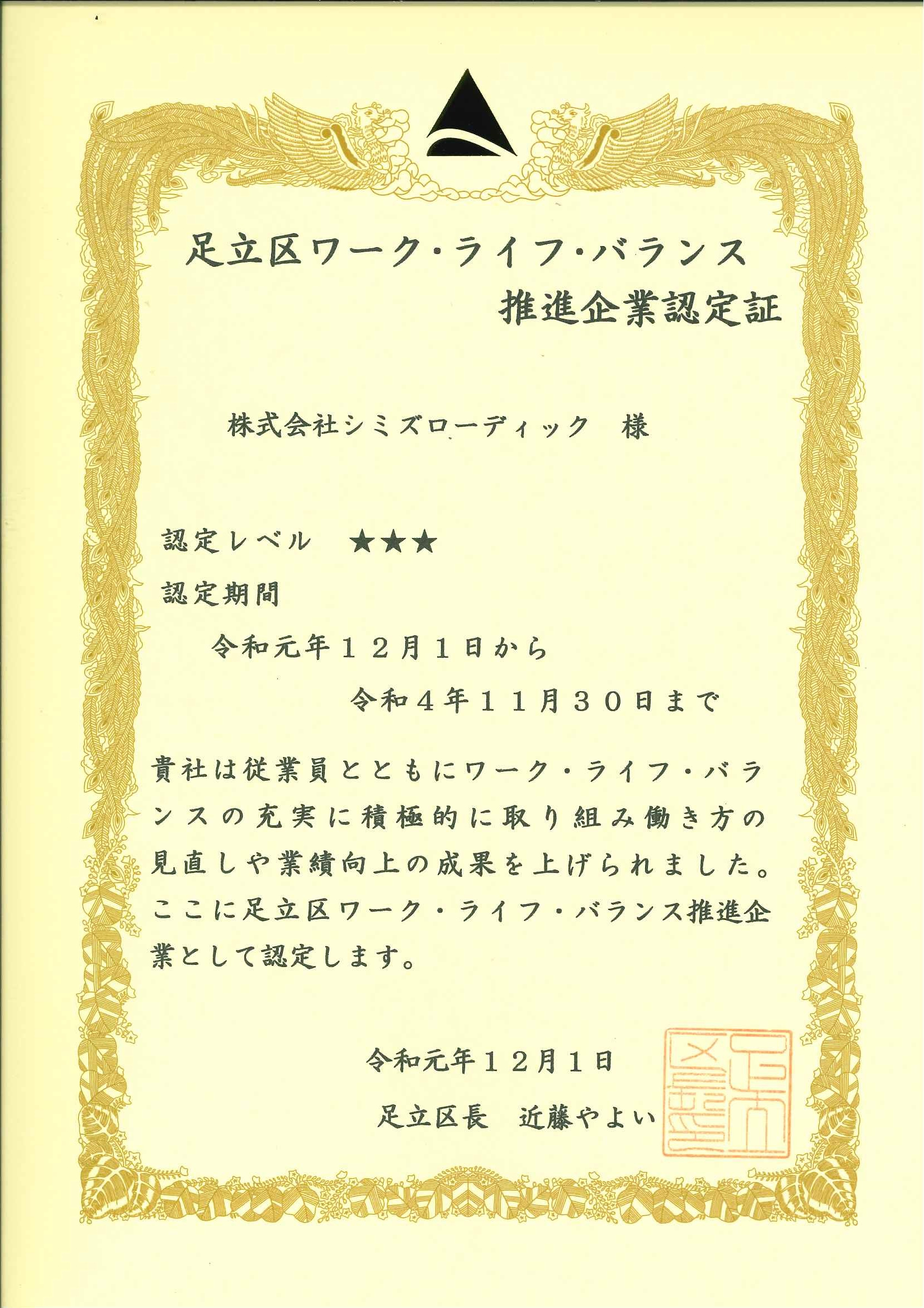 今年度より、刷新された足立区ワーク・ライフバランス推進企業認定